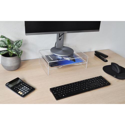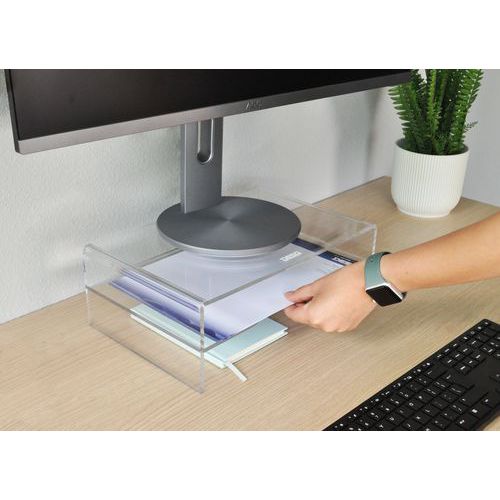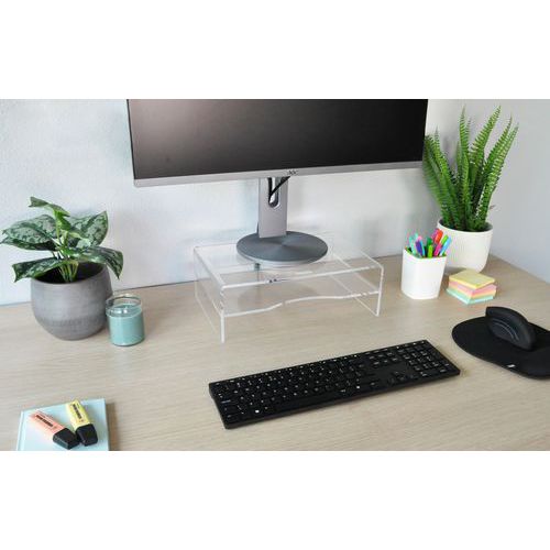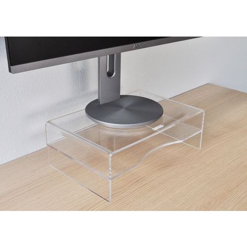 Support pour moniteur écran en acrylique transparent, Charge maxi: 15 kg, Hauteur réglable mini: 12 cm