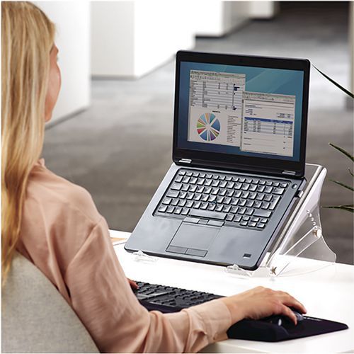 | Intitulé du produit | Support pour ordinateur portable Clarity™, Charge maxi: 6 kg, Hauteur maxi: 204 mm, Coloris: Transparent |
