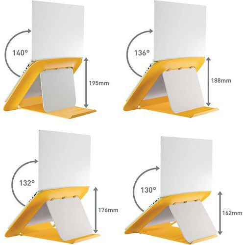 Support pour ordinateur portable réglable COSY Ergo, Charge maxi: 8 kg, Coloris: Jaune, Hauteur: 312 mm