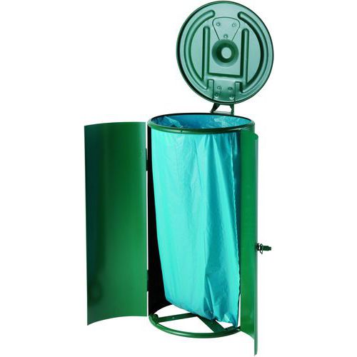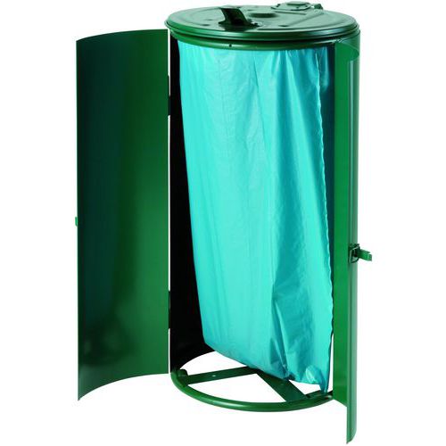 Support sac-poubelle en métal robuste avec couvercle et 2 portes.