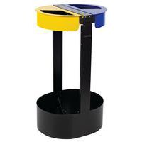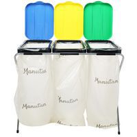 Support pour 2 flux distincts. Finition: traité anticorrosion. Ceinture élastique pour bon maintien des sacs. Couvercles de coloris différents pour gestion aisée des déchets. À poser simplement au sol ou à fixer (facultatif).