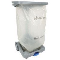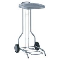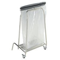 Support pour sac poubelle avec plaque de fond. Déplacement facilité par 4 roues pivotantes dont 2 avec frein. Anticorrosif grâce à son matériau. Pratique et facile à utiliser.