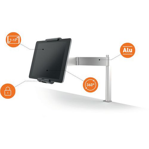 | Intitulé du produit | Support tablette de table à bras articulé, Charge maxi: 1 kg, Matériau: Aluminium, Hauteur: 440 mm |