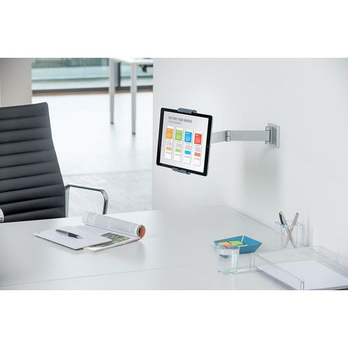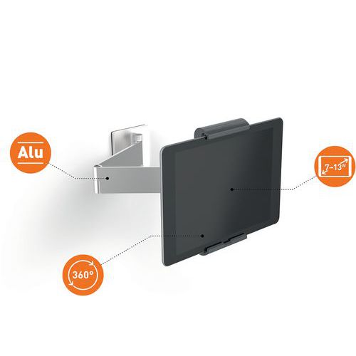 | Intitulé du produit | Support tablette mural avec bras articulé, Charge maxi: 1 kg, Épaisseur: 95 mm, Matériau: Aluminium |