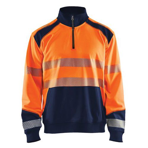 Sweat col camionneur haute visibilité orange fluorescent/marine