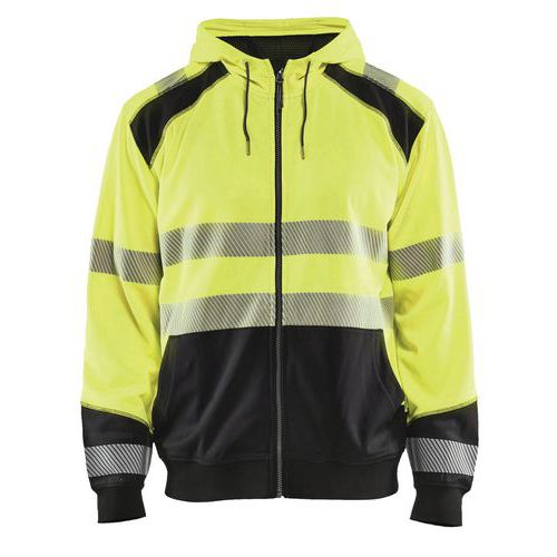 Sweat zippé à capuche haute visibilité jaune fluorescent/noir