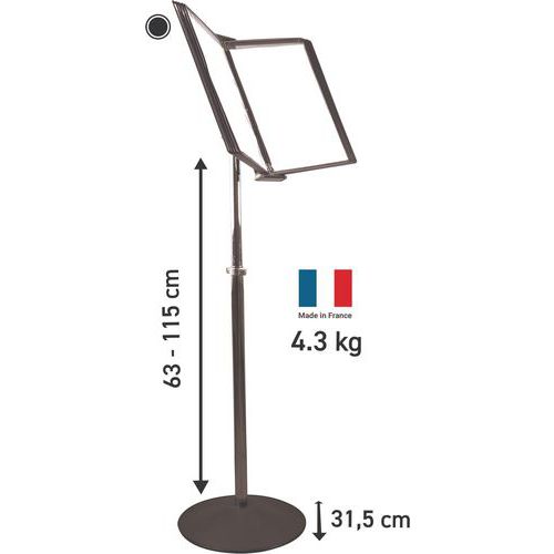 | Intitulé du produit | Système de présentation sur pied métal, Coloris: Noir, Largeur: 315 mm, Hauteur: 1420 mm, Profondeur: 315 mm |