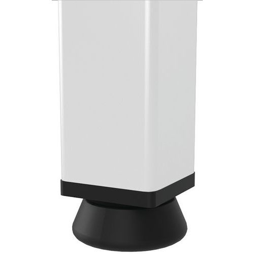 Table 4 pieds avec piètements sur vérins réglables en synthétique. Piètements en tubes carrés de 35x35x2 mm avec renfort en métal dans les coins. Structure métallique solide en tôle de 1.5 mm. Les parties métalliques sont peintes en poudre epoxy-polyester. Hauteur bureau fixe: standard à 75 cm (incl. top de 25 mm).