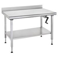 Piètement : tubes en acier inoxydable carré 40 x 40 mm. Système hydraulique (course 0 -300 mm) commandé par une manivelle escamotable. 4 vérins réglables pour l’équilibrage.