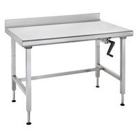 Piètement : tubes en acier inoxydable carré 40 x 40 mm. Système hydraulique (course 0 -300 mm) commandé par une manivelle escamotable. 4 vérins réglables pour l’équilibrage.