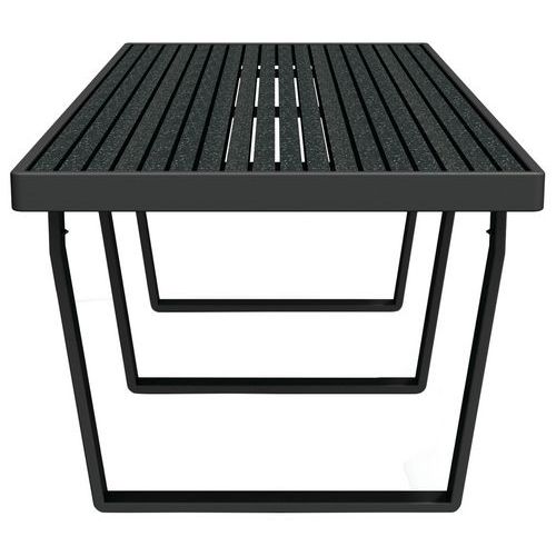 Table Arbane en Ipra, matière produite à partir de plastiques multi composants. Résistance au gel, à la mousse, aux UV, lisse sans risque d'écharde, traitement anti tags, nettoyage à l'eau. Structure aluminium laqué : métal léger qui a une grande résistance à la corrosion. Sans entretien, sans traitement, imputrescible. Durée de vie accrue par rapport aux modèles en bois et en plastiques. Garantie : 25 ans sur l'Ipra, 10 ans sur l'alu Fabrication à partir de matières recyclées : canettes, pots de fleurs, aluminium… Classement au feu M4. Kit de fixation fourni
