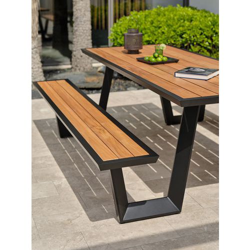 | Intitulé du produit | Table avec bancs en aluminium et imitation bois, Longueur hors tout: 220 cm, Forme: Rectangle |
