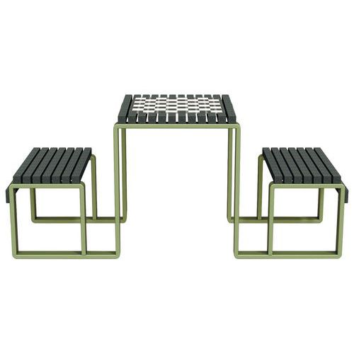 Table bancs Arbane PMR jeu d'échecs Ipra/alu, Matériau: Métalloplastique IPRA, Type de fixation: À poser Table bancs Arbane PMR jeu d'échecs Ipra/alu, Matériau: Métalloplastique IPRA, Type de fixation: À poser