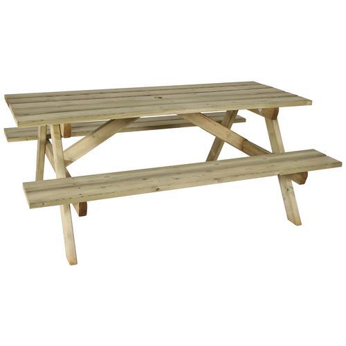 Table-bancs bois Batz Pin traité, Matériau: Pin, Type de fixation: À poser