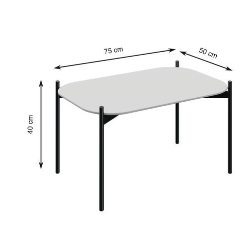 Table basse Meet, Type de piétement: 4 pieds, Largeur: 75 cm, Forme: Rectangle, Plateau coloris: Noir