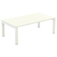 Structure métal pour une parfaite rigidité Plateau chants PVC épaisseur 2 mm Piètement tube acier section 50 x 30 mm laqué blanc Patins de protection Utilisation extérieure possible sous abri