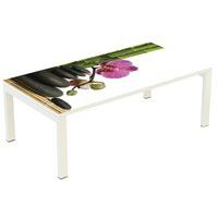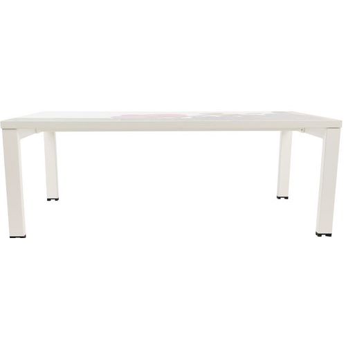 Structure métal pour une parfaite rigidité. Plateau chants PVC épaisseur 2 mm Piètement tube acier section 50 x 30 mm laqué blanc. Patins de protection. Fabriqué en UE Garantie client : 10 ans