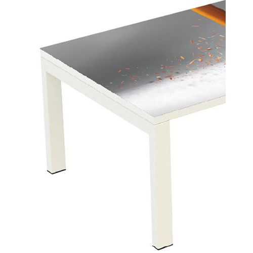 Structure métal pour une parfaite rigidité. Plateau chants PVC épaisseur 2 mm Piètement tube acier section 50 x 30 mm laqué blanc. Patins de protection. Fabriqué en UE Garantie client : 10 ans