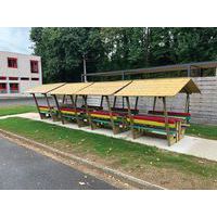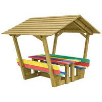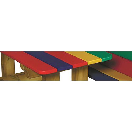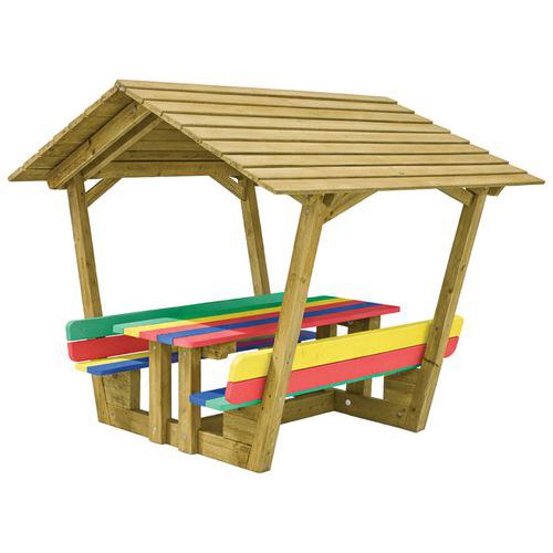 - Table cabane enfant pin avec plateau et assise multicolore : confort supplémentaire sous une forte chaleur