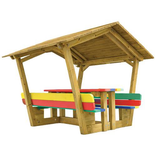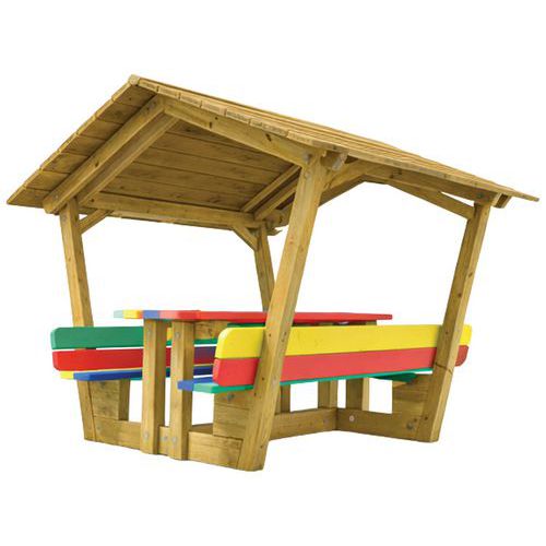 Table cabane enfant pin CLIV plateau et assise multicolor - MOBEXTAN