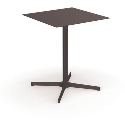 Table carrée extérieur Lucie. Idéale pour les espaces extérieurs de pause ou de restauration. Disponible en deux hauteurs. Plateau et piètement en métal.
