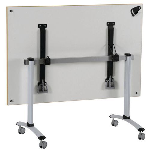 Table de réunion carrée pliante Axe avec plateau pivotant permettant un gain de place pour le rangement. Verrouillage automatique du plateau en position travail (horizontal) et position verticale (stockage) . Système de liaison rapide entre les plateaux par vis molette. Equipée de 4 roulettes en polyamide Ø 75 mm avec frein.Table de réunion carrée pliante Axe avec plateau pivotant permettant un gain de place pour le rangement. Verrouillage automatique du plateau en position travail (horizontal) et position verticale (stockage) . Système de liaison rapide entre les plateaux par vis molette. Equipée de 4 roulettes en polyamide Ø 75 mm avec frein. Chants ABS épaisseur 3 mm. Piètement métal laqué époxy. Fabriquée en France Livrée pieds démontés.