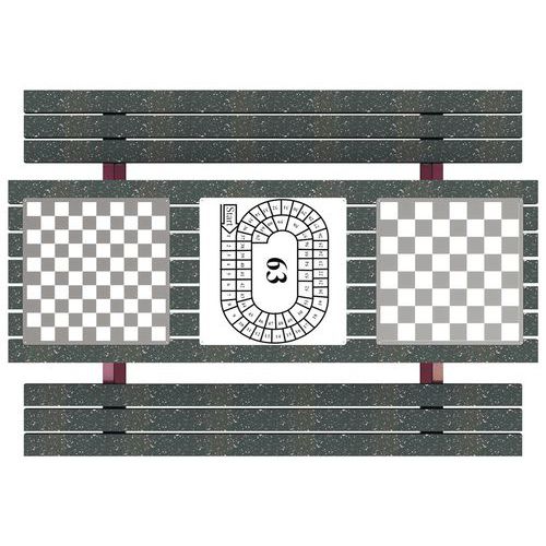 Jeu de dames, jeu de l'oie, jeu d'échec. Les pions ne sont pas fournis. Fabrication à partir de matières recyclées : canettes, pots de fleurs, aluminium… Classement au feu M4. Kit de fixation fourni