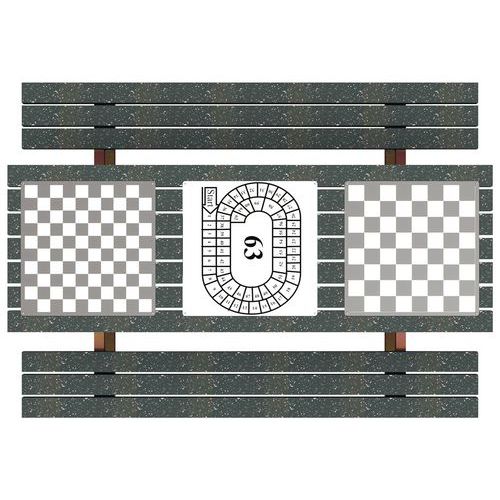 Jeu de dames, jeu de l'oie, jeu d'échec. Les pions ne sont pas fournis. Fabrication à partir de matières recyclées : canettes, pots de fleurs, aluminium… Classement au feu M4. Kit de fixation fourni