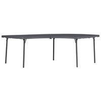 - Table pliante XL Moon en forme de demi-lune avec plateau 100% polyéthylène haute densité.