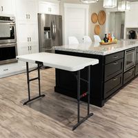 - Table pliante Worktop avec un plateau 100% polyéthylène haute densité.