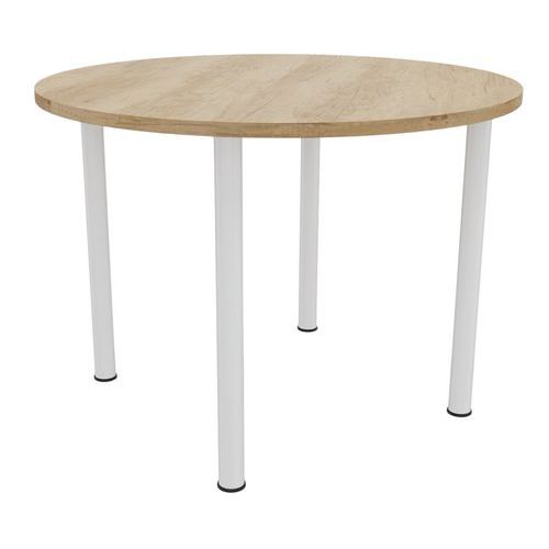 Cette table ronde permettra de créer un petit espace de réunion au sein d'un bureau. Panneau de particules bois haute densité épaisseur 25 mm. Chants ABS anti-choc 2 mm. Pieds équipés de vérins de réglage (course 10 mm) pour compenser les défauts du sol. Table ronde avec 2 dimensions au choix : diamètre 100 ou 120 cm. 4 pieds cylindriques en acier métal finition époxy laqué. Livrée prête à monter avec notice.