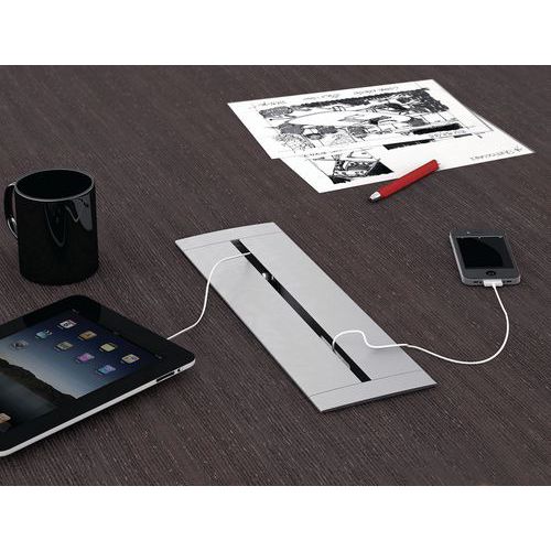Table réunion carrée Quatuor trappe-Boitier électrique-Manutan Expert, Type de piétement: Panneau