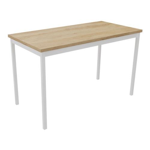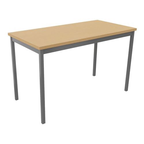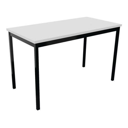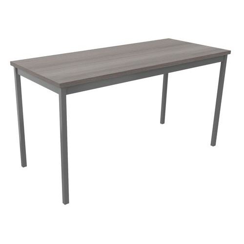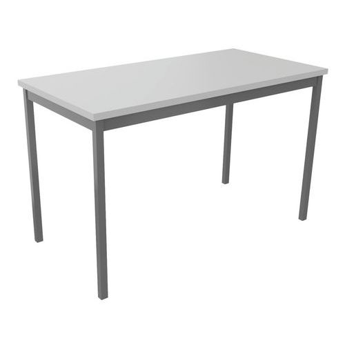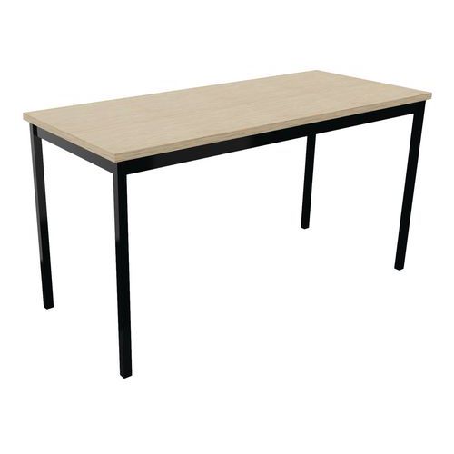 Table de réunion droite polyvalente avec plateau mélaminé, épaisseur 25 mm. Chants ABS anti-choc 2 mm. Cadre métallique porteur de section 50 x 20 mm, rêvetement époxy, finition identique aux pieds. Piétement métal de section 30 x 30 mm finition époxy laqué Vérins de réglages de course 10 mm pour corriger les défauts du sol et proposer un alignement parfait entre les tables.