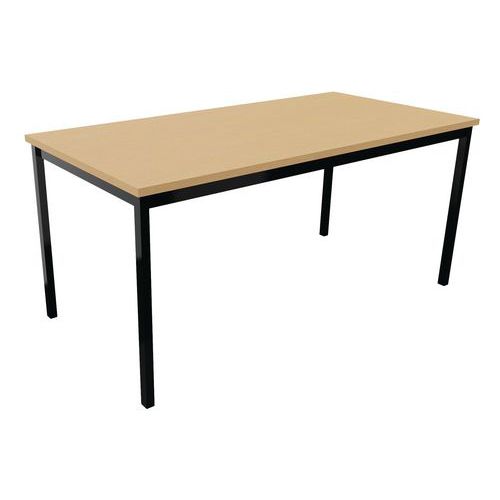 Table de réunion droite polyvalente avec plateau mélaminé, épaisseur 25 mm. Chants ABS anti-choc 2 mm. Cadre métallique porteur de section 50 x 20 mm, rêvetement époxy, finition identique aux pieds. Piétement métal de section 30 x 30 mm finition époxy laqué Vérins de réglages de course 10 mm pour corriger les défauts du sol et proposer un alignement parfait entre les tables.
