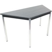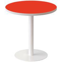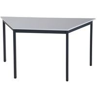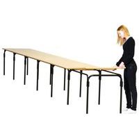 Plateau hauteur 74 cm. Chants PVC épaisseur 3 mm. Piètement repliable, tube Ø 30 mm avec patins antitrace (finition époxy coloris noir ou alu). Butées de protection sous le plateau pour la superposition des tables. Livrée montée.