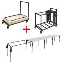 Plateau panneau de particules densité 70 kg/m3 épaisseur 25 mm. Mélaminé haute résistance Poutre centrale sous plateau section 40 mm Piètement sur roulettes multidirectionnelles avec frein Chants ABS épaisseur 2 mm, coloris assorti au plateau Structure et piètement acier laminé à froid épaisseur 2 mm, recouvert peinture époxy coloris blanc Roulettes Ø 60 mm avec frein Livrée prête à monter avec notice
