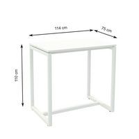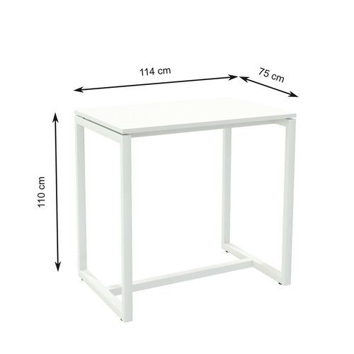 Plateau mélaminé épaisseur 25 mm avec chant ABS 2 mm Plateau hauteur 110 cm Pied acier laqué époxy blanc antirayure. Piètement central sur socle acier laqué époxy blanc anti-rayure. Socle Ø 49,5 cm, épaisseur 4 mm. Livré prêt à monter avec notice.