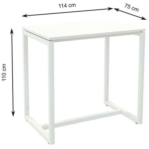 Structure métallique pour une parfaite rigidité. Plateau mélaminé épaisseur 25 mm, avec chant PVC 2 mm. L x H x P plateau : 114 x 110 x 75 cm. Piètement tube acier section 50x40 mm. Peinture laquée époxy blanc. vérins de réglage pour la mise à niveau. Livrée prête à monter avec notice.
