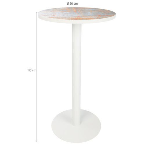 Plateau mélaminé épaisseur 25 mm avec chant ABS 2 mm Plateau hauteur 110 cm Pied acier laqué époxy blanc antirayure. Piètement central sur socle acier laqué époxy blanc anti-rayure. Socle Ø 49,5 cm, épaisseur 4 mm. Livré prêt à monter avec notice.