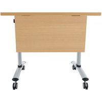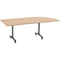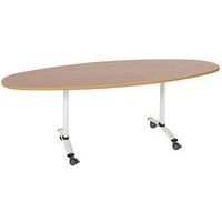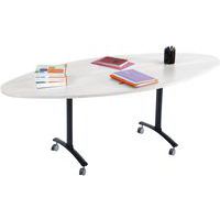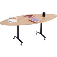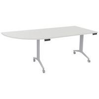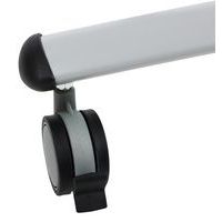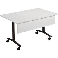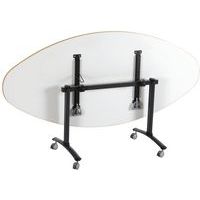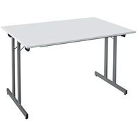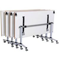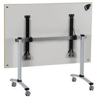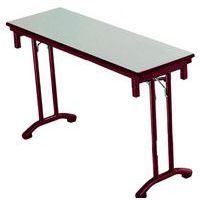 Table de réunion rectangulaire pliante Axe avec plateau stratifié pivotant permettant un gain de place pour le rangement. Plateau stratifié permettant des repas et le nettoyage à l’eau savonneuse Verrouillage automatique du plateau en position travail (horizontal) et position verticale (stockage) . Système de liaison rapide entre les plateaux par vis molette. Equipée de 4 roulettes Ø 75 mm avec frein. Chants ABS épaisseur 2 mm. Piètement métal laqué époxy. Fabriquée en France. Livrée pieds démontés.
