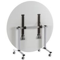 Table de réunion ronde Axe avec plateau pivotant permettant un gain de place pour le rangement. Plateau mélaminé qui convient uniquement pour des réunions et non des repas, contrairement aux plateau stratifiés. Verrouillage automatique du plateau en position travail (horizontal) et position verticale (stockage). Système de liaison rapide entre les plateaux par vis molettes. Equipée de 4 roulettes en polyamide Ø 75 mm avec frein.Table de réunion ronde Axe avec plateau pivotant permettant un gain de place pour le rangement. Verrouillage automatique du plateau en position travail (horizontal) et position verticale (stockage). Système de liaison rapide entre les plateaux par vis molettes. Equipée de 4 roulettes en polyamide Ø 75 mm avec frein. Chants ABS épaisseur 3 mm. Piètement métal laqué époxy. Fabriqué en France Livrée pieds démontés.