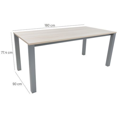 | Intitulé du produit | Table de réunion Verona, Type de piétement: 4 pieds, Hauteur: 77.4 cm, Largeur: 180 cm, Forme: Rectangle |