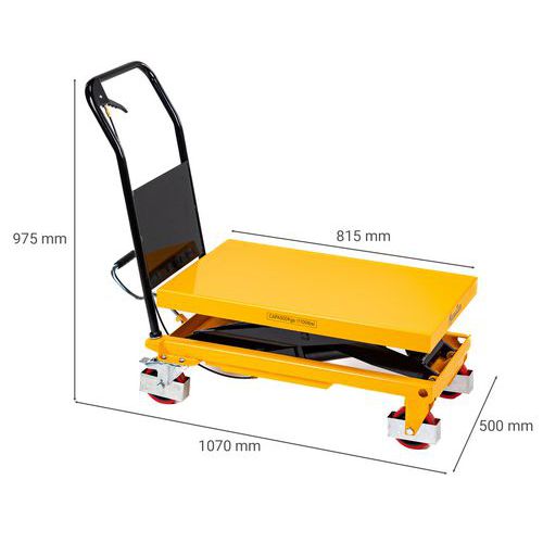 | Intitulé du produit | Table élévatrice mobile, Force: 500 kg, Plateau hauteur maxi: 895 mm |