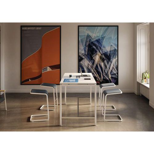 La table haute mélaminé anti rayures et anti reflets convient au meuble de coworking. Organiser votre espace de travail convivial. Ce mobilier permet à vos collaborateur de partager mais aussi d'organiser sa journée de manière active. Idéal pour vos activités de groupe. Compatible avec le meuble coworking Creo