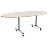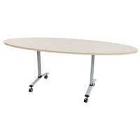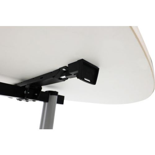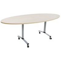 Table de réunion ovale Axe avec plateau pivotant permettant un gain de place pour le rangement. Verrouillage automatique du plateau en position travail (horizontal) et position verticale (stockage) . Système de liaison rapide entre les plateaux par vismolettes. Equipée de 4 roulettes en polyamide Ø 75 mm avec frein.Table de réunion ovale Axe avec plateau pivotant permettant un gain de place pour le rangement. Verrouillage automatique du plateau en position travail (horizontal) et position verticale (stockage) . Système de liaison rapide entre les plateaux par vismolettes. Equipée de 4 roulettes en polyamide Ø 75 mm avec frein. Chants ABS épaisseur 3 mm. Piètement métal laqué époxy. Fabriquée en France Livrée pieds démontés.