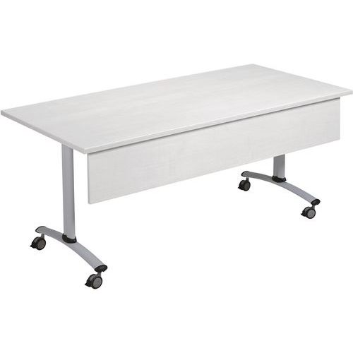 Table de réunion carrée pliante avec voile de fond Axe avec plateau pivotant permettant un gain de place pour le rangement. Verrouillage automatique du plateau en position travail (horizontal) et position verticale (stockage) . Système de liaison rapide entre les plateaux par vis molette. Equipée de 4 roulettes Ø 75 mm avec frein.Table de réunion carrée pliante avec voile de fond Axe avec plateau pivotant permettant un gain de place pour le rangement. Verrouillage automatique du plateau en position travail (horizontal) et position verticale (stockage) . Système de liaison rapide entre les plateaux par vis molette. Equipée de 4 roulettes Ø 75 mm avec frein. Voile de fond hauteur 25 cm. Chants ABS épaisseur 2 mm. Piètement métal laqué époxy. Fabriquée en France Livrée pieds démontés.
