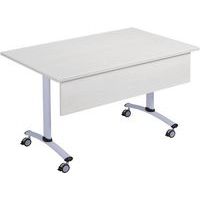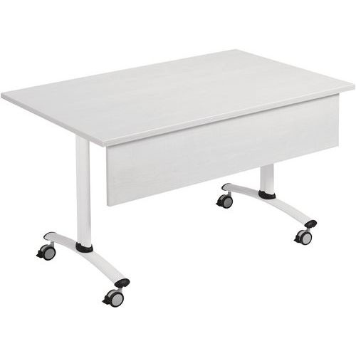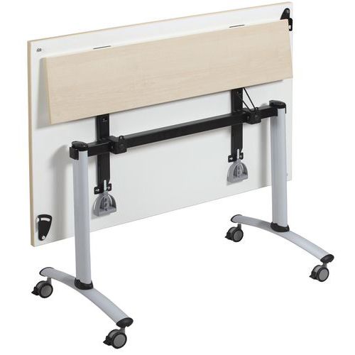 Table de réunion rectangulaire pliante avec voile de fond Axe avec plateau pivotant permettant un gain de place pour le rangement. Verrouillage automatique du plateau en position travail (horizontal) et position verticale (stockage) . Système de liaison rapide entre les plateaux par vis molette. Equipée de 4 roulettes Ø 75 mm avec frein.Table de réunion rectangulaire pliante avec voile de fond Axe avec plateau pivotant permettant un gain de place pour le rangement. Verrouillage automatique du plateau en position travail (horizontal) et position verticale (stockage) . Système de liaison rapide entre les plateaux par vis molette. Equipée de 4 roulettes Ø 75 mm avec frein. Voile de fond hauteur 25 cm. Chants ABS épaisseur 2 mm. Piètement métal laqué époxy. Fabriquée en France. Livrée pieds démontés.