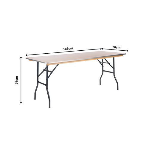Ocean Rectangular est une table rectangulaire pliante avec plateau en contreplaqué, dotée d'une finition avec bord en pvc et piètement en acier époxy noir.