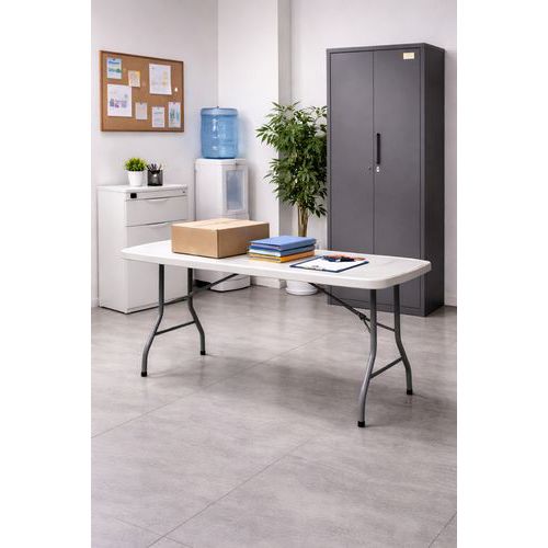 | Intitulé du produit | Table pliante reconditionnée, Capacité (nb de personnes): 6, Plateau coloris: Blanc/Beige |