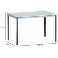 Table polyvalente Manutan, Type de piétement: 4 pieds, Hauteur: 74 cm, Largeur: 75 cm, Forme: Rectangle